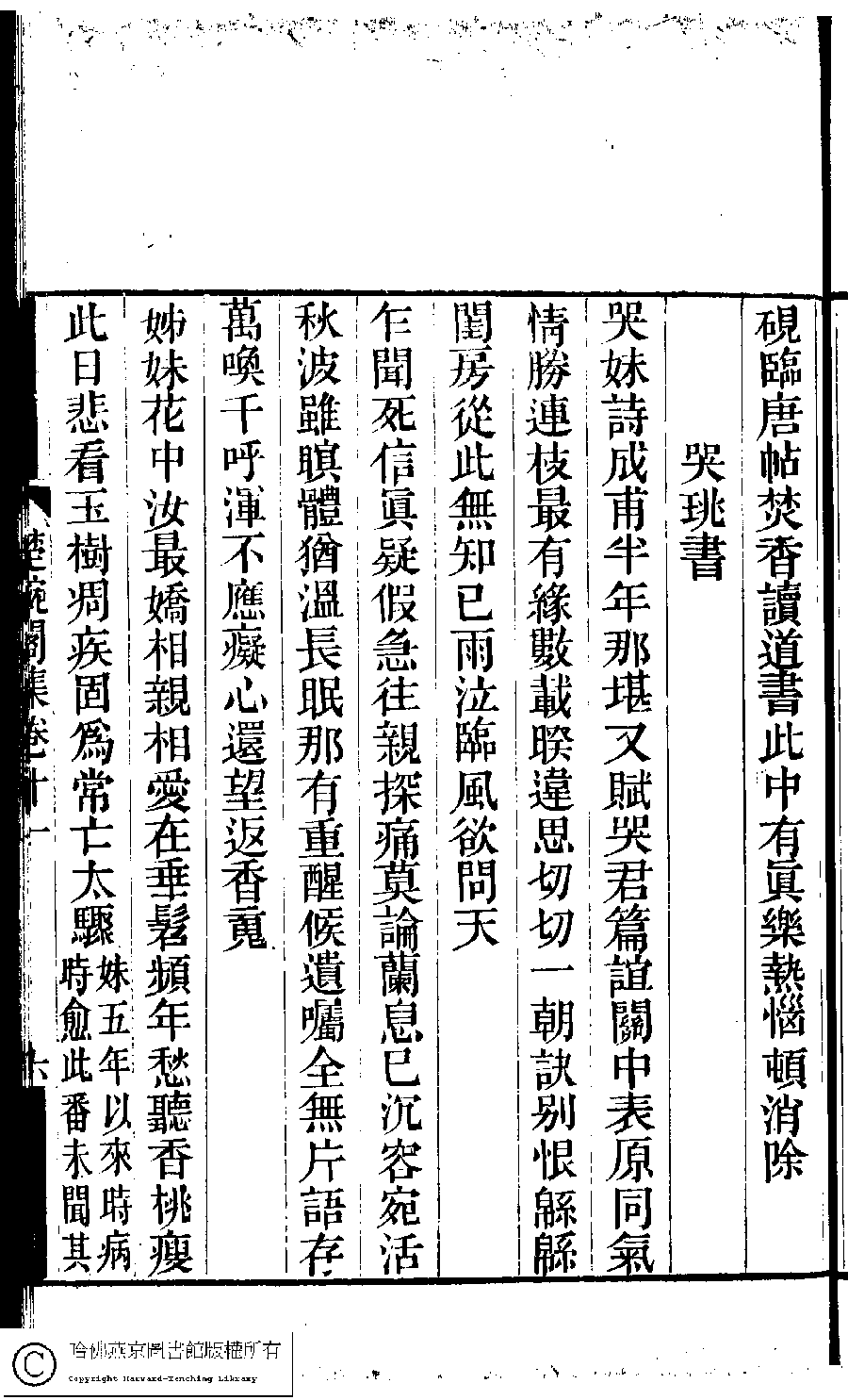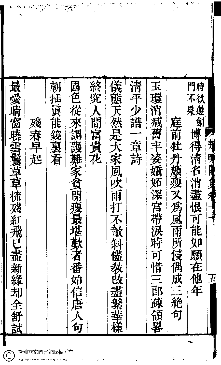 | (PRINT FRIENDLY VERSION) 楚畹閣集﹕十二卷(清季蘭韻撰)。清道光二十七年(1847)刻本 ![]() Page : 11.6a | click for larger image | 楚畹閣集﹕十二卷(清季蘭韻撰)。清道光二十七年(1847)刻本![]() Page : 11.5b | click for larger image | Back |