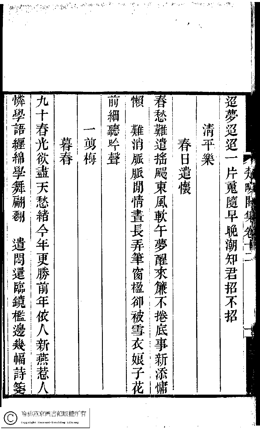 | (PRINT FRIENDLY VERSION) 楚畹閣集﹕十二卷(清季蘭韻撰)。清道光二十七年(1847)刻本 ![]() Page : 12.1b | click for larger image | 楚畹閣集﹕十二卷(清季蘭韻撰)。清道光二十七年(1847)刻本![]() Page : 12.1a | click for larger image | Back |