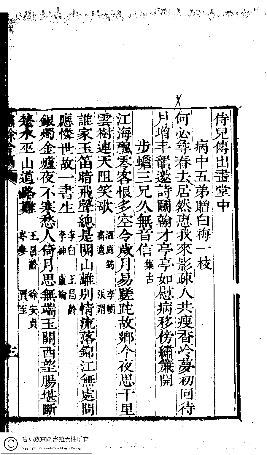 Poem [Bing zhong wu di zeng bai mei yi zhi]