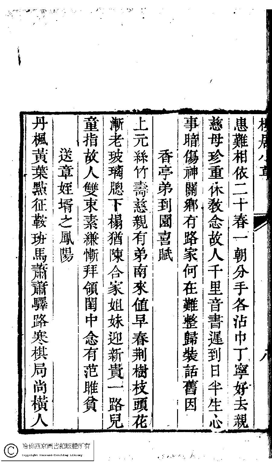| (PRINT FRIENDLY VERSION) 樓居小草﹕一卷(清袁杼撰)。清嘉慶間(1796-1820)刻本。 ![]() Page : 8b | click for larger image | 樓居小草﹕一卷(清袁杼撰)。清嘉慶間(1796-1820)刻本。![]() Page : 8a | click for larger image | Back |