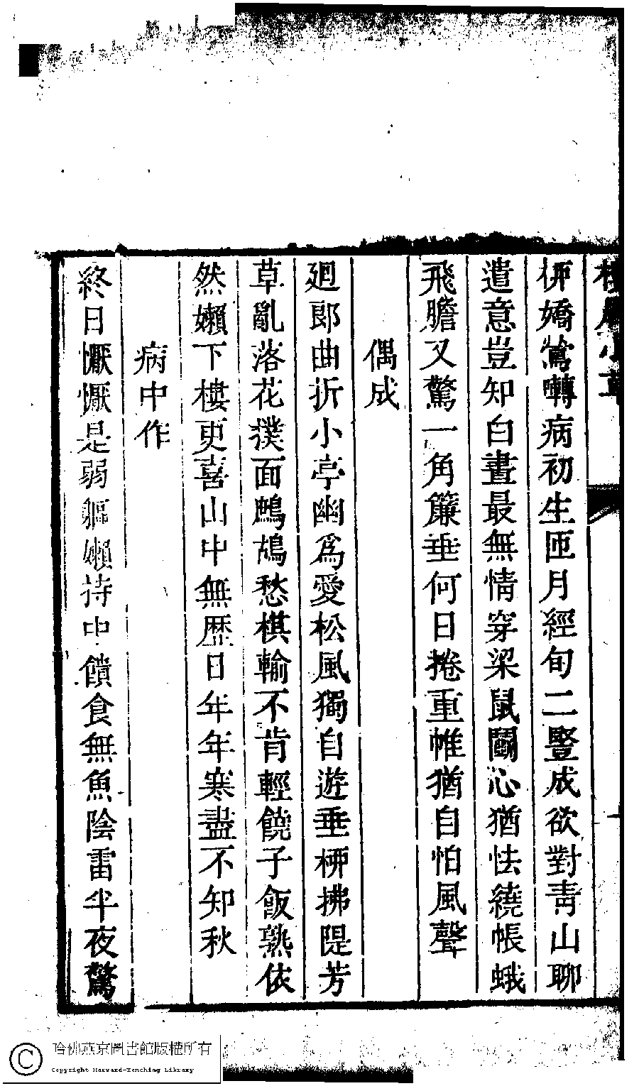 | (PRINT FRIENDLY VERSION) 樓居小草﹕一卷(清袁杼撰)。清嘉慶間(1796-1820)刻本。 ![]() Page : 10b | click for larger image | Back |