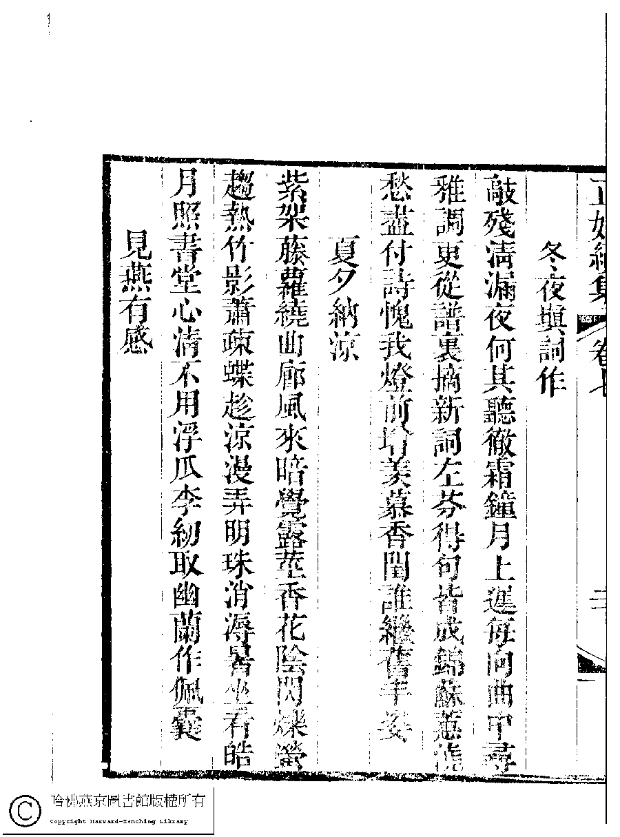 | (PRINT FRIENDLY VERSION) 國朝閨秀正始續集﹕十卷﹐附錄﹕一卷﹐補遺﹕一卷﹐輓詞﹕一卷(清惲珠輯)。清道光十六年(1836)紅香館刻本。 ![]() Page : 7.20b | click for larger image | Back |