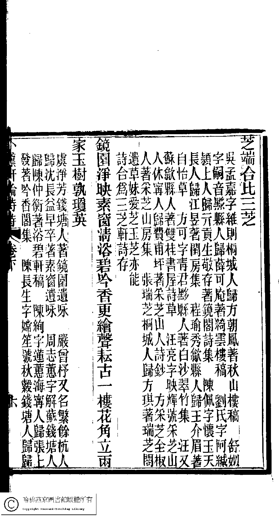 | (PRINT FRIENDLY VERSION) 陳孝女遺集﹕二卷﹔小黛軒論詩詩﹕二卷(清陳芸撰)。民國三年(1914)刻本 ![]() Page : 下.6b | click for larger image | 陳孝女遺集﹕二卷﹔小黛軒論詩詩﹕二卷(清陳芸撰)。民國三年(1914)刻本![]() Page : 下.6a | click for larger image | Back |
