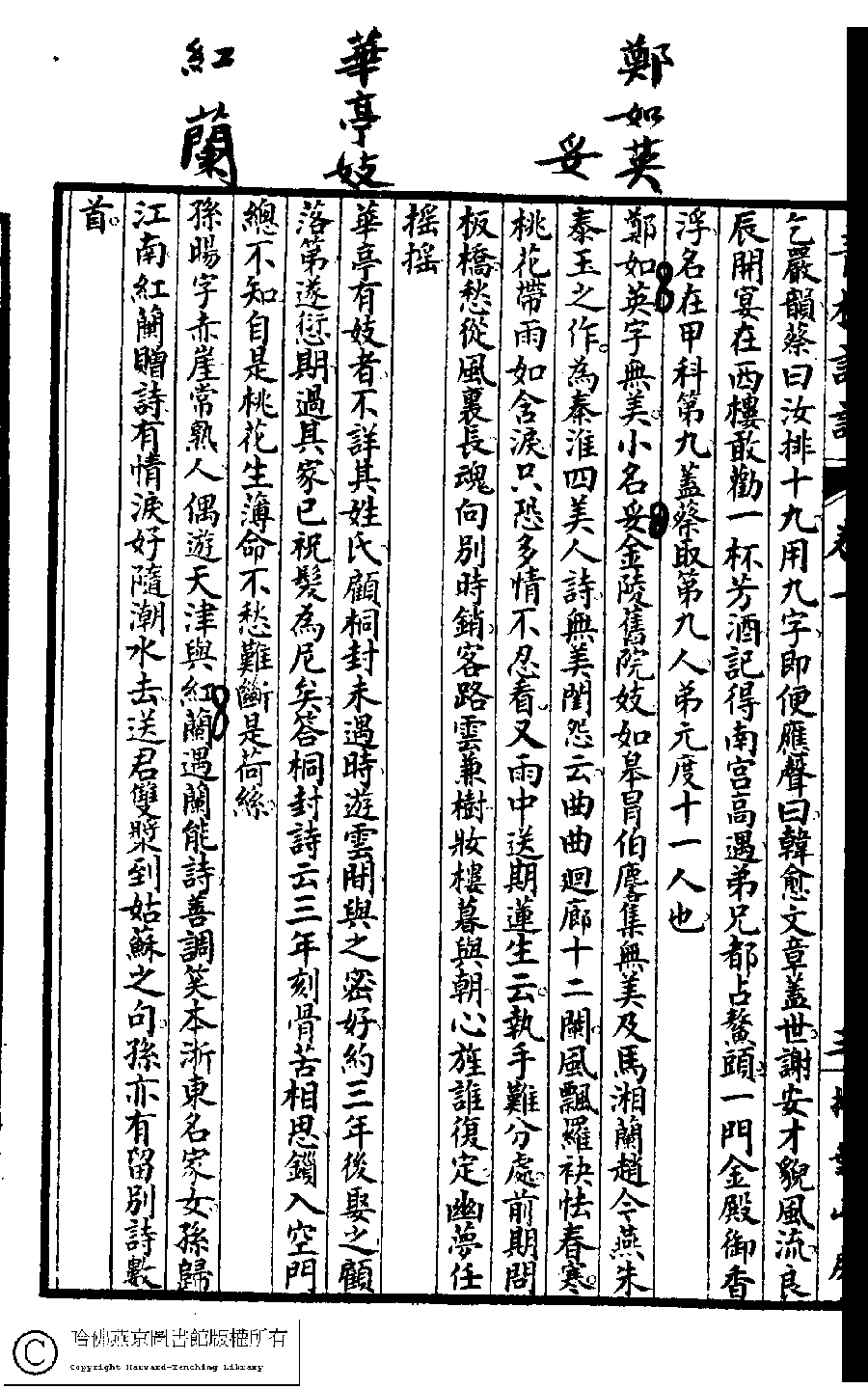 | (PRINT FRIENDLY VERSION) 青樓詩話﹕二卷(雷瑨輯)。民國五年(1916)掃葉山房石印本。 ![]() Page : 上.3b | click for larger image | Back |