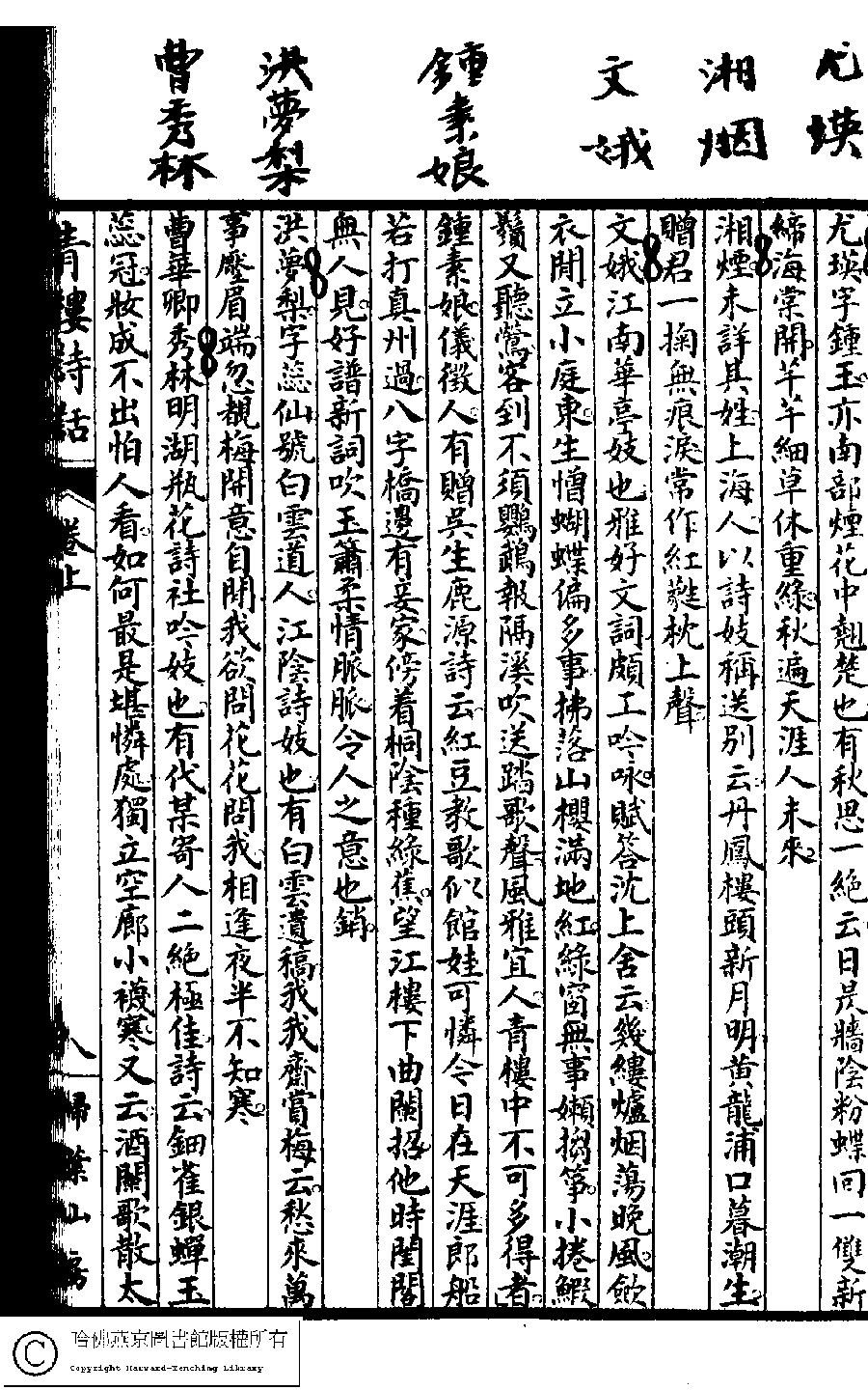 | (PRINT FRIENDLY VERSION) 青樓詩話﹕二卷(雷瑨輯)。民國五年(1916)掃葉山房石印本。 ![]() Page : 上.8a | click for larger image | Back |