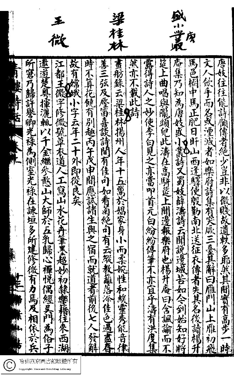 | (PRINT FRIENDLY VERSION) 青樓詩話﹕二卷(雷瑨輯)。民國五年(1916)掃葉山房石印本。 ![]() Page : 上.13a | click for larger image | Back |