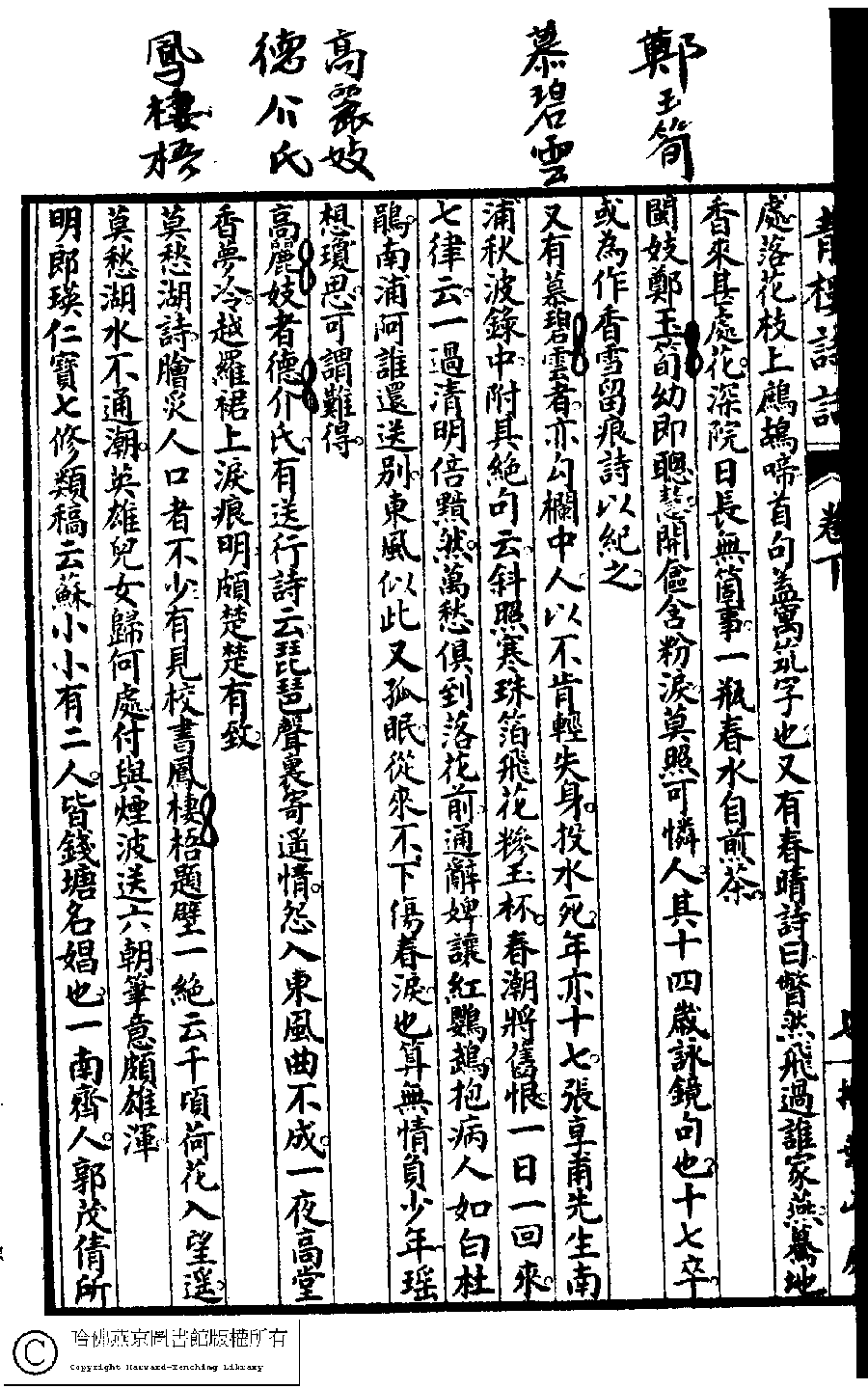 | (PRINT FRIENDLY VERSION) 青樓詩話﹕二卷(雷瑨輯)。民國五年(1916)掃葉山房石印本。 ![]() Page : 下.7b | click for larger image | Back |