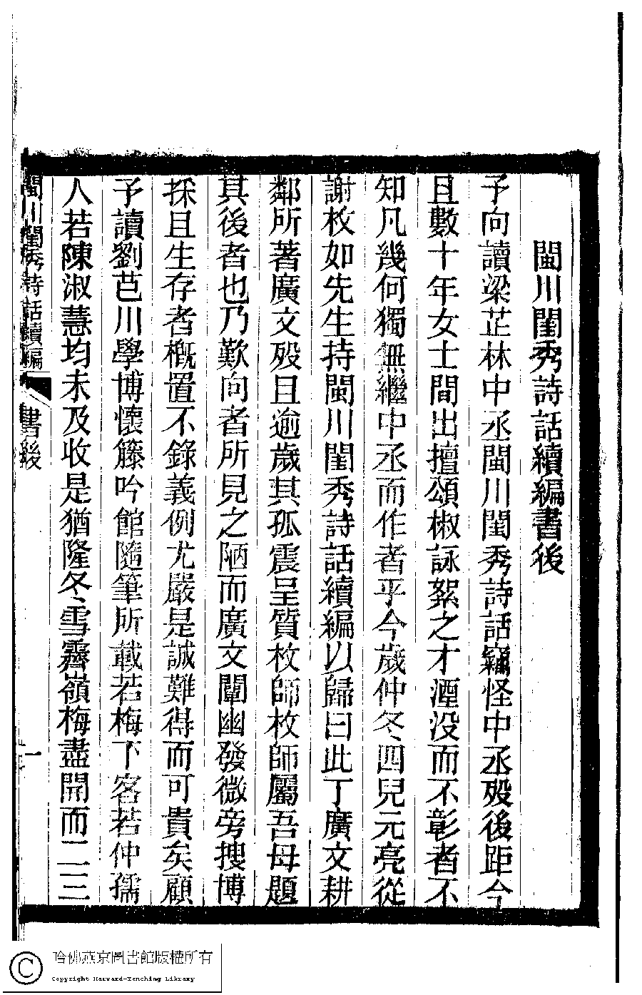 閩川閨秀詩話續編﹕四卷(清丁芸輯)![]() Page : 書後.3b | click for larger image | 閩川閨秀詩話續編﹕四卷(清丁芸輯)![]() Page : 書後.3a | click for larger image | Back |