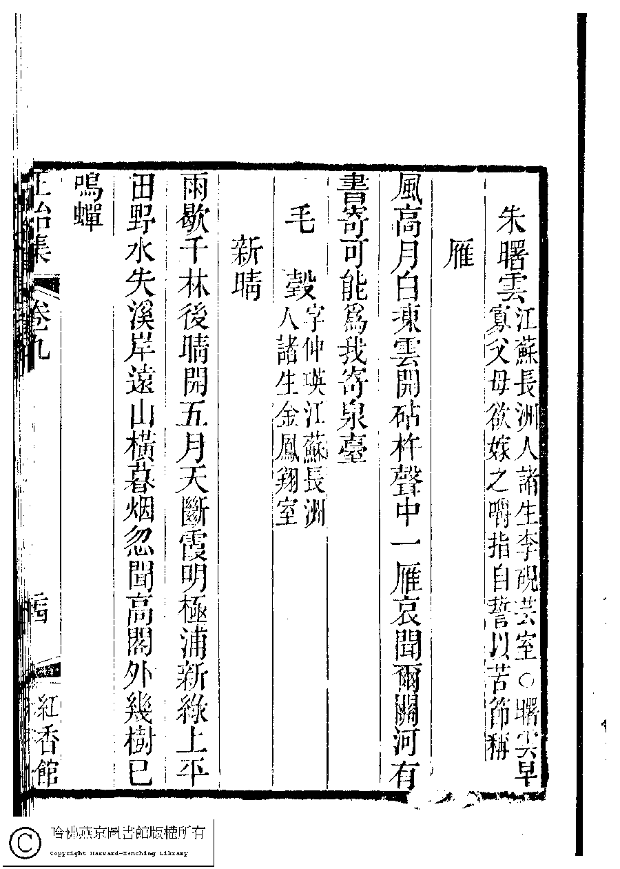 | (PRINT FRIENDLY VERSION) 國朝閨秀正始集﹕二十卷﹐附錄﹕一卷﹐補遺﹕一卷﹐又附題詞﹕一卷(清惲珠輯)。清道光十一年(1831)紅香館刻本。 ![]() Page : 9.24a | click for larger image | Back |