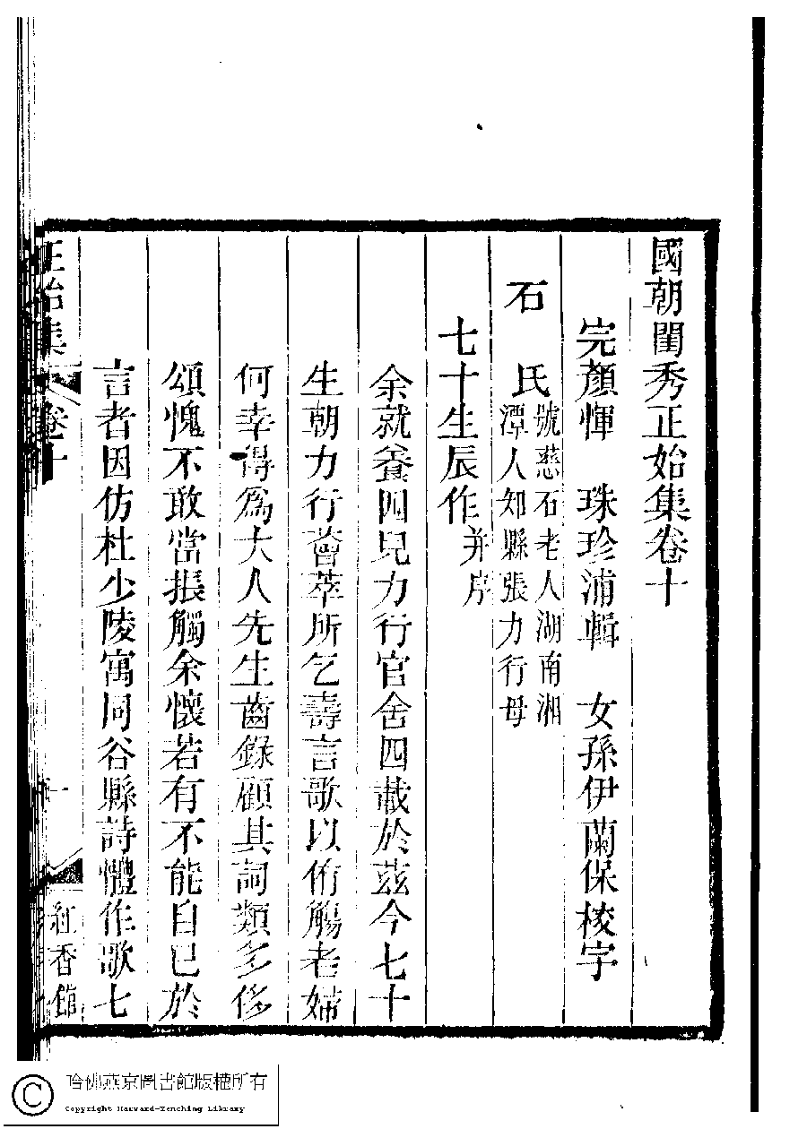 | (PRINT FRIENDLY VERSION) 國朝閨秀正始集﹕二十卷﹐附錄﹕一卷﹐補遺﹕一卷﹐又附題詞﹕一卷(清惲珠輯)。清道光十一年(1831)紅香館刻本。 ![]() Page : 10.1a | click for larger image | Back |