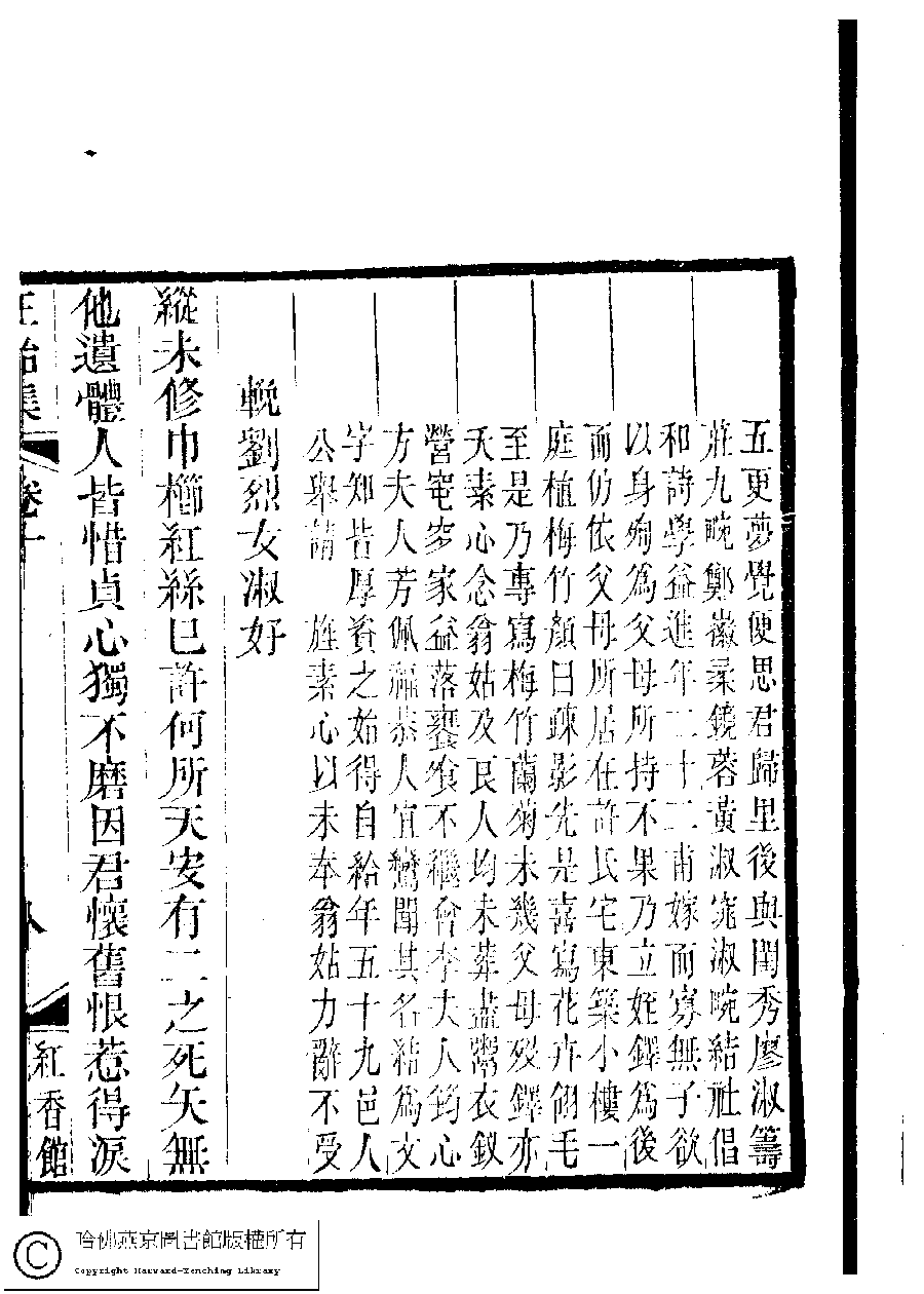 | (PRINT FRIENDLY VERSION) 國朝閨秀正始集﹕二十卷﹐附錄﹕一卷﹐補遺﹕一卷﹐又附題詞﹕一卷(清惲珠輯)。清道光十一年(1831)紅香館刻本。 ![]() Page : 10.8a | click for larger image | 國朝閨秀正始集﹕二十卷﹐附錄﹕一卷﹐補遺﹕一卷﹐又附題詞﹕一卷(清惲珠輯)。清道光十一年(1831)紅香館刻本。![]() Page : 10.7b | click for larger image | Back |