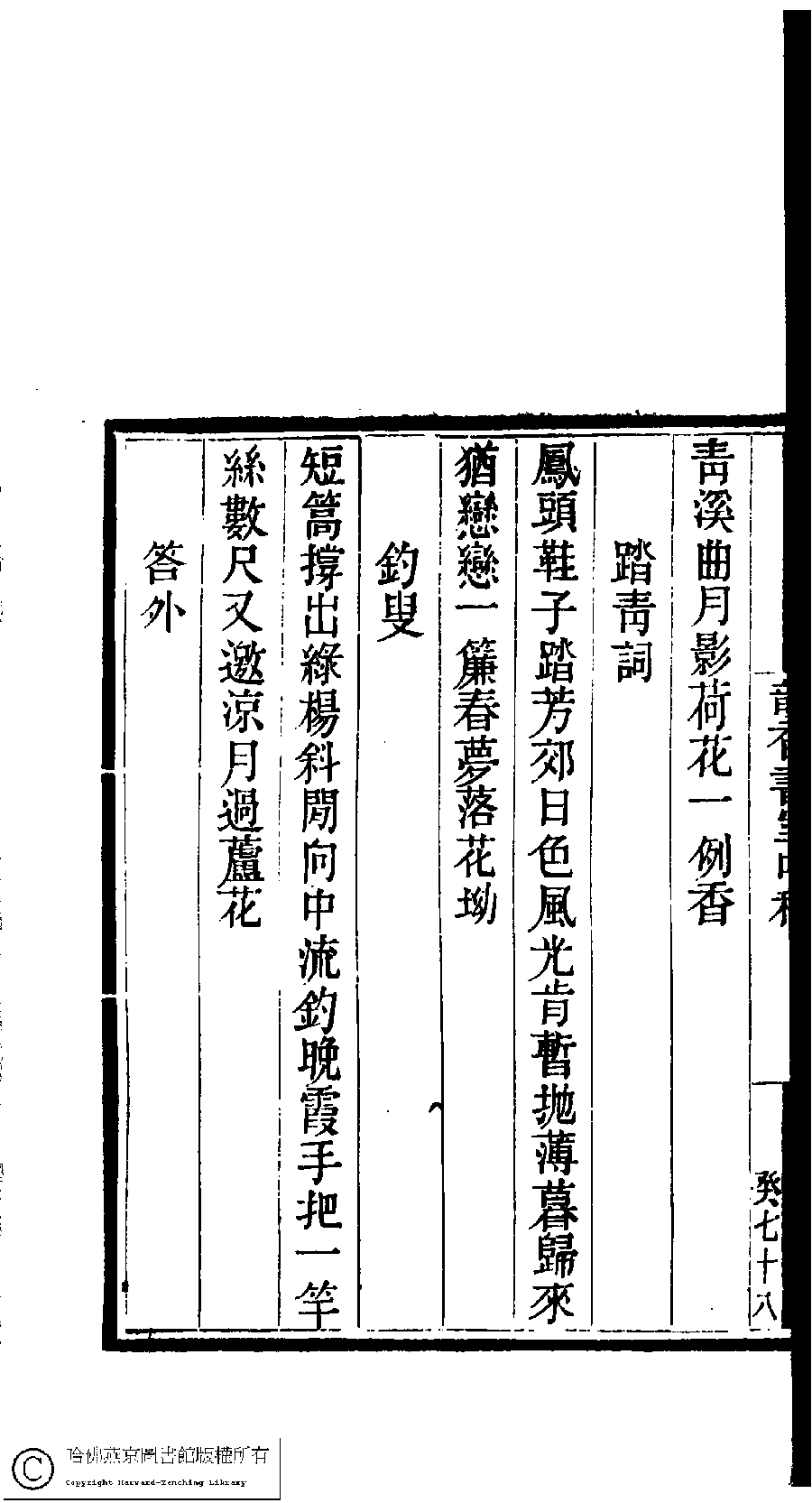| (PRINT FRIENDLY VERSION) 國朝閨閣詩鈔﹕一百種一百卷(清蔡殿齊輯) : 韻香書室吟稿﹕一卷。清道光二十四年(1844)刻本。 ![]() Page : 10.79a | click for larger image | 國朝閨閣詩鈔﹕一百種一百卷(清蔡殿齊輯) : 韻香書室吟稿﹕一卷。清道光二十四年(1844)刻本。![]() Page : 10.78b | click for larger image | Back |