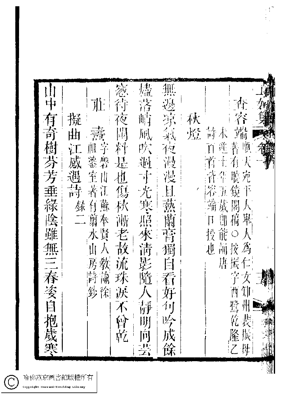 | (PRINT FRIENDLY VERSION) 國朝閨秀正始集﹕二十卷﹐附錄﹕一卷﹐補遺﹕一卷﹐又附題詞﹕一卷(清惲珠輯)。清道光十一年(1831)紅香館刻本。 ![]() Page : 10.15b | click for larger image | Back |