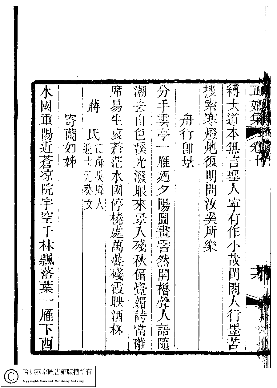 | (PRINT FRIENDLY VERSION) 國朝閨秀正始集﹕二十卷﹐附錄﹕一卷﹐補遺﹕一卷﹐又附題詞﹕一卷(清惲珠輯)。清道光十一年(1831)紅香館刻本。 ![]() Page : 10.16b | click for larger image | Back |