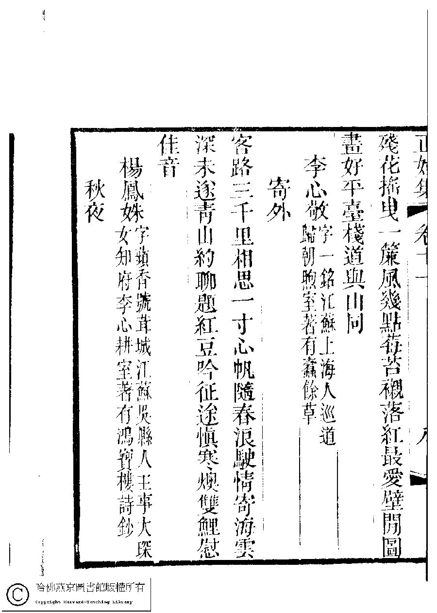 | (PRINT FRIENDLY VERSION) 國朝閨秀正始集﹕二十卷﹐附錄﹕一卷﹐補遺﹕一卷﹐又附題詞﹕一卷(清惲珠輯)。清道光十一年(1831)紅香館刻本。 ![]() Page : 11.8b | click for larger image | Back |