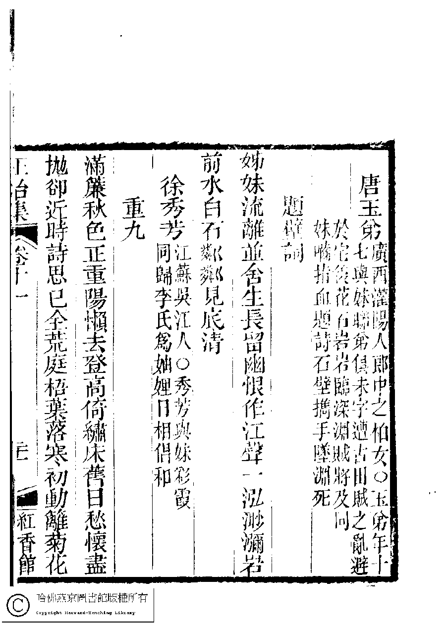 | (PRINT FRIENDLY VERSION) 國朝閨秀正始集﹕二十卷﹐附錄﹕一卷﹐補遺﹕一卷﹐又附題詞﹕一卷(清惲珠輯)。清道光十一年(1831)紅香館刻本。 ![]() Page : 11.21a | click for larger image | Back |
