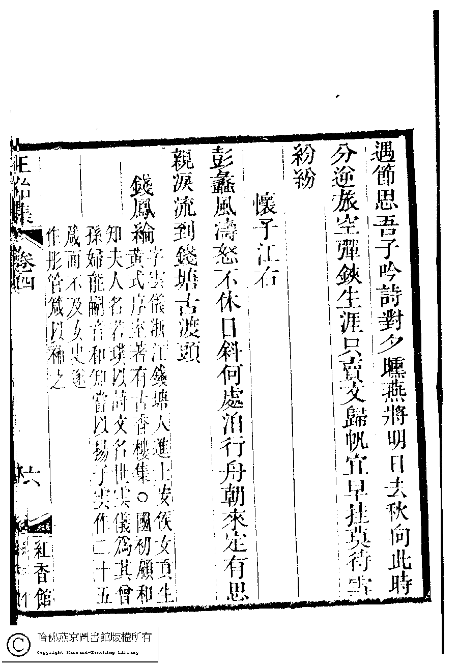 | (PRINT FRIENDLY VERSION) 國朝閨秀正始集﹕二十卷﹐附錄﹕一卷﹐補遺﹕一卷﹐又附題詞﹕一卷(清惲珠輯)。清道光十一年(1831)紅香館刻本。 ![]() Page : 4.6a | click for larger image | Back |