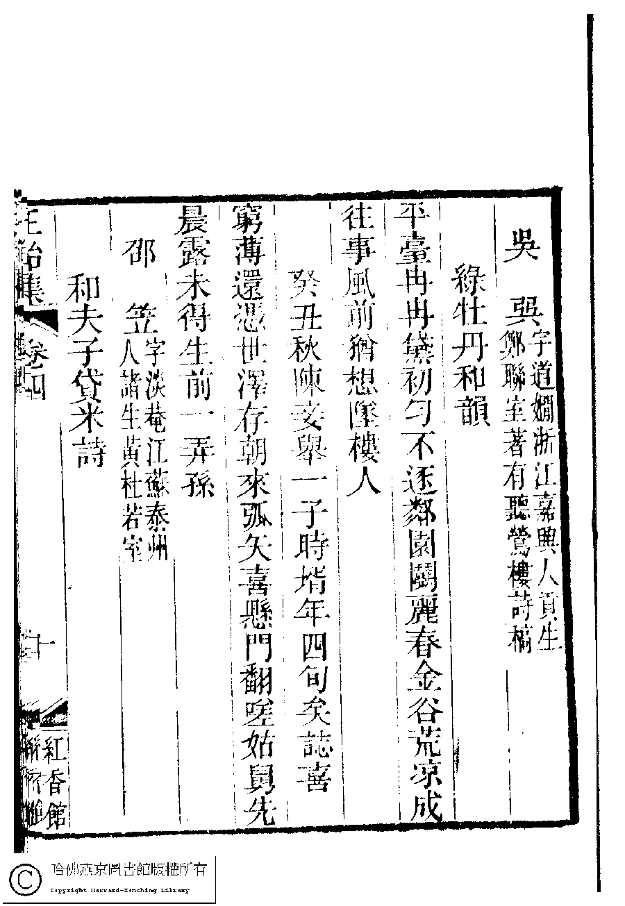 | (PRINT FRIENDLY VERSION) 國朝閨秀正始集﹕二十卷﹐附錄﹕一卷﹐補遺﹕一卷﹐又附題詞﹕一卷(清惲珠輯)。清道光十一年(1831)紅香館刻本。 ![]() Page : 4.10a | click for larger image | Back |