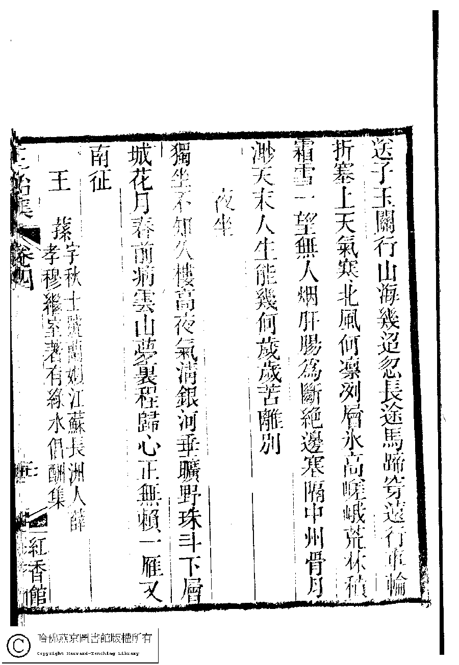 | (PRINT FRIENDLY VERSION) 國朝閨秀正始集﹕二十卷﹐附錄﹕一卷﹐補遺﹕一卷﹐又附題詞﹕一卷(清惲珠輯)。清道光十一年(1831)紅香館刻本。 ![]() Page : 4.20a | click for larger image | Back |