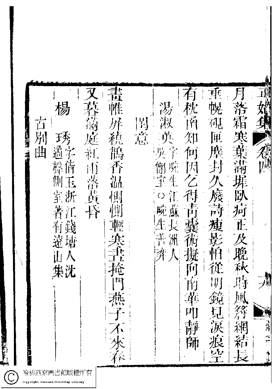 | (PRINT FRIENDLY VERSION) 國朝閨秀正始集﹕二十卷﹐附錄﹕一卷﹐補遺﹕一卷﹐又附題詞﹕一卷(清惲珠輯)。清道光十一年(1831)紅香館刻本。 ![]() Page : 4.19b | click for larger image | Back |
