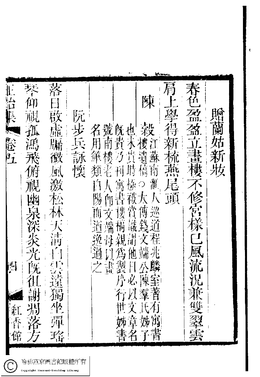 | (PRINT FRIENDLY VERSION) 國朝閨秀正始集﹕二十卷﹐附錄﹕一卷﹐補遺﹕一卷﹐又附題詞﹕一卷(清惲珠輯)。清道光十一年(1831)紅香館刻本。 ![]() Page : 5.4a | click for larger image | Back |