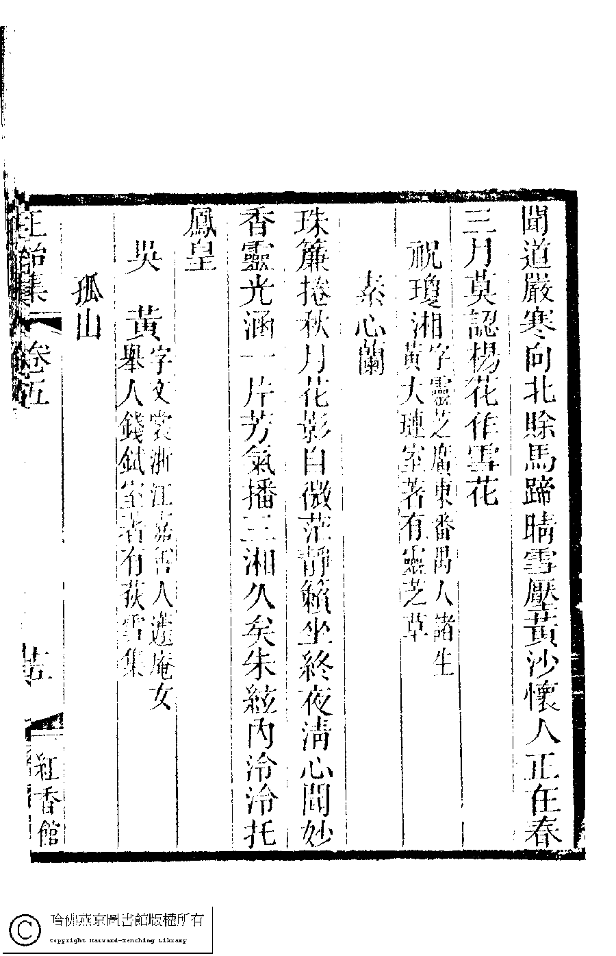 | (PRINT FRIENDLY VERSION) 國朝閨秀正始集﹕二十卷﹐附錄﹕一卷﹐補遺﹕一卷﹐又附題詞﹕一卷(清惲珠輯)。清道光十一年(1831)紅香館刻本。 ![]() Page : 5.15a | click for larger image | Back |