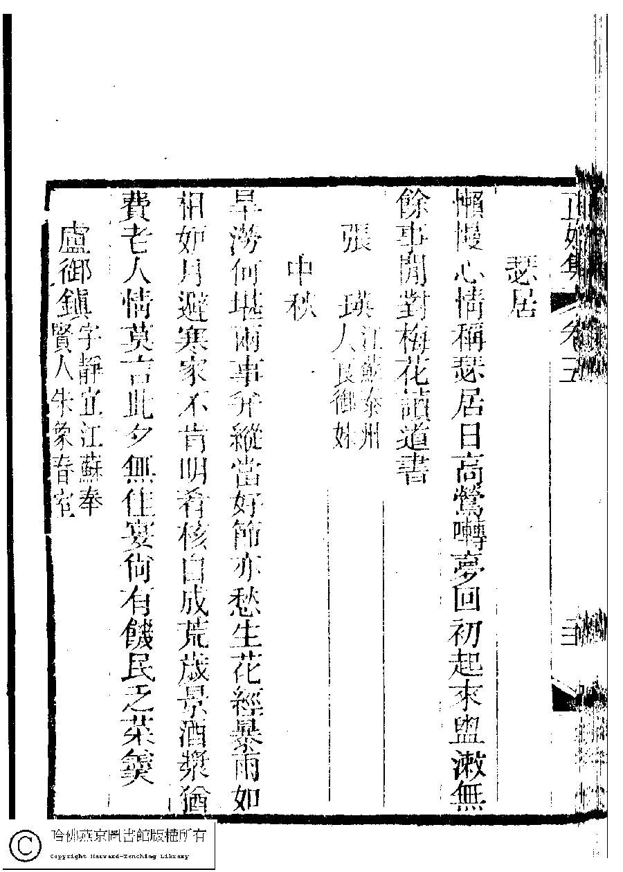 | (PRINT FRIENDLY VERSION) 國朝閨秀正始集﹕二十卷﹐附錄﹕一卷﹐補遺﹕一卷﹐又附題詞﹕一卷(清惲珠輯)。清道光十一年(1831)紅香館刻本。 ![]() Page : 5.21b | click for larger image | Back |