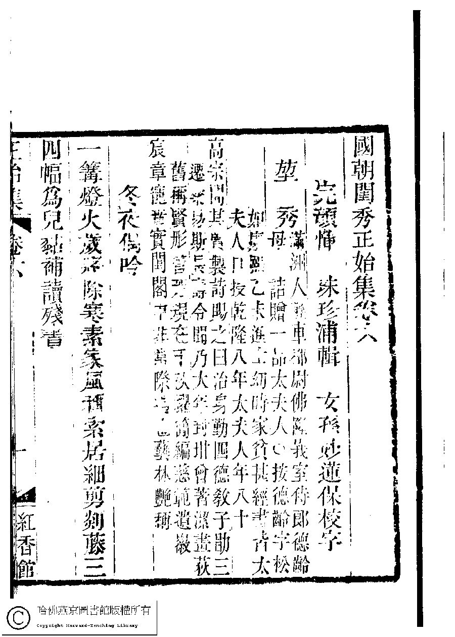| (PRINT FRIENDLY VERSION) 國朝閨秀正始集﹕二十卷﹐附錄﹕一卷﹐補遺﹕一卷﹐又附題詞﹕一卷(清惲珠輯)。清道光十一年(1831)紅香館刻本。 ![]() Page : 6.1a | click for larger image | Back |