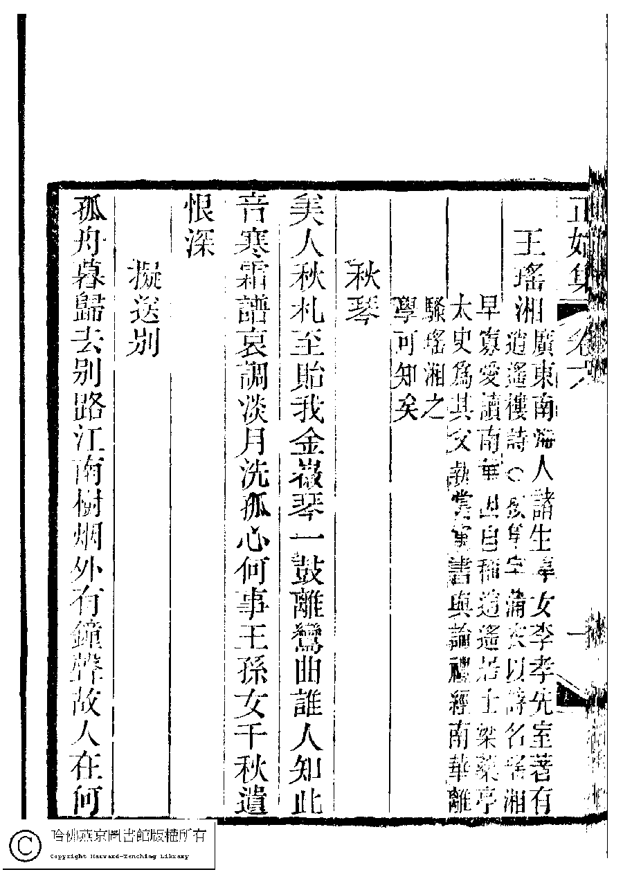 | (PRINT FRIENDLY VERSION) 國朝閨秀正始集﹕二十卷﹐附錄﹕一卷﹐補遺﹕一卷﹐又附題詞﹕一卷(清惲珠輯)。清道光十一年(1831)紅香館刻本。 ![]() Page : 6.1b | click for larger image | Back |