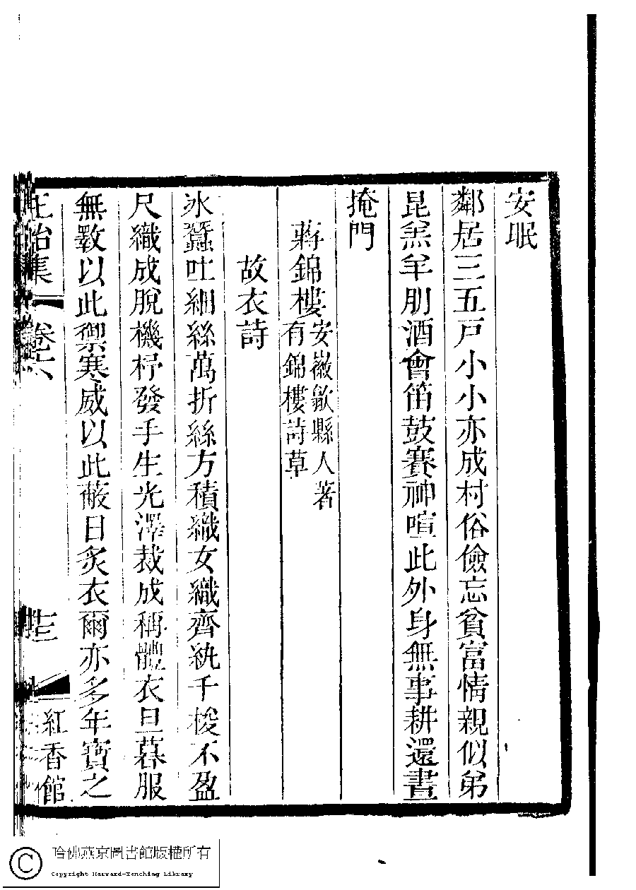 | (PRINT FRIENDLY VERSION) 國朝閨秀正始集﹕二十卷﹐附錄﹕一卷﹐補遺﹕一卷﹐又附題詞﹕一卷(清惲珠輯)。清道光十一年(1831)紅香館刻本。 ![]() Page : 6.13a | click for larger image | Back |