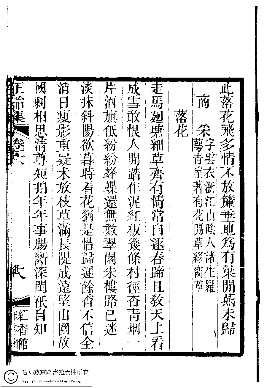 | (PRINT FRIENDLY VERSION) 國朝閨秀正始集﹕二十卷﹐附錄﹕一卷﹐補遺﹕一卷﹐又附題詞﹕一卷(清惲珠輯)。清道光十一年(1831)紅香館刻本。 ![]() Page : 6.18a | click for larger image | Back |