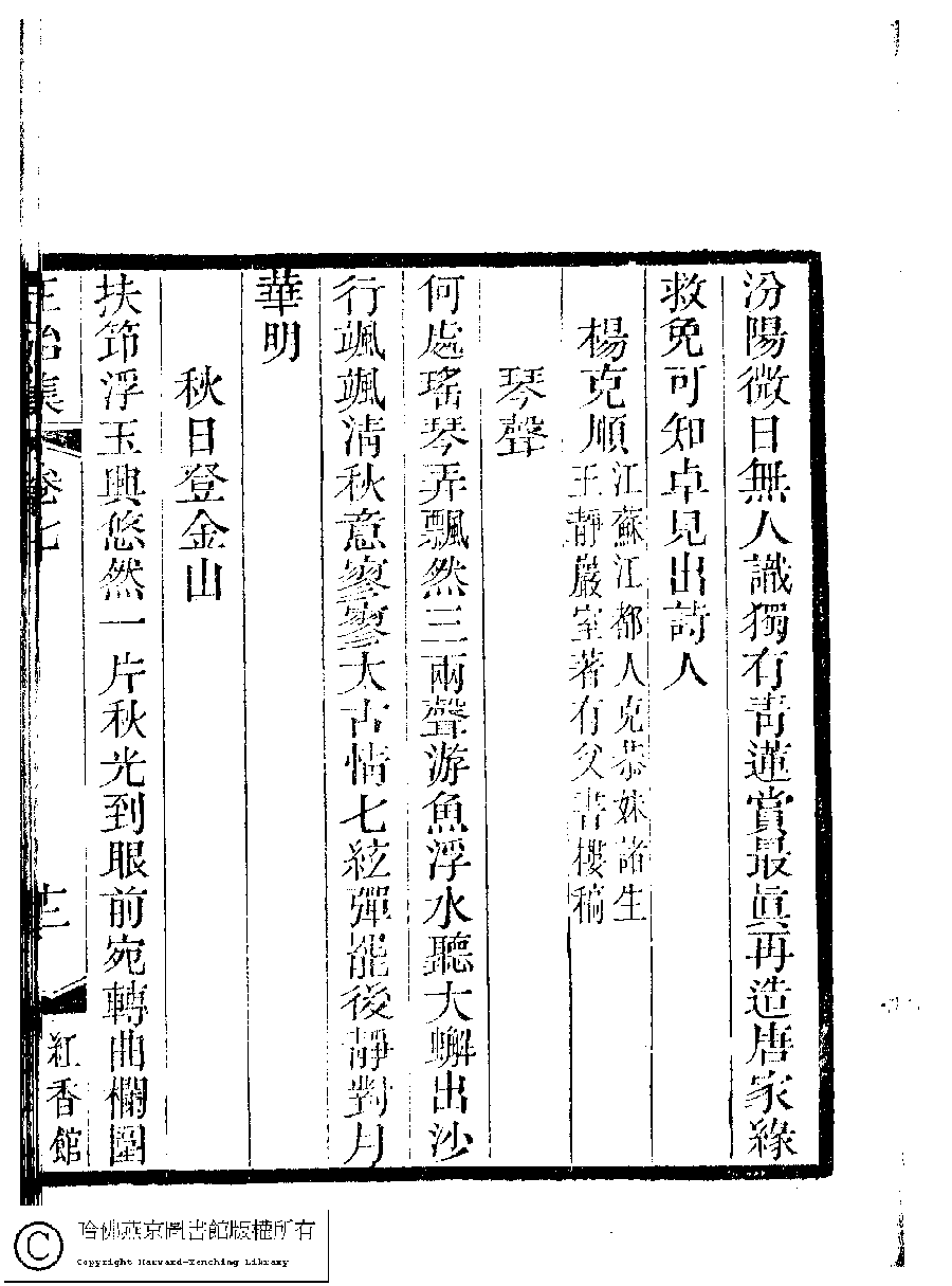 | (PRINT FRIENDLY VERSION) 國朝閨秀正始集﹕二十卷﹐附錄﹕一卷﹐補遺﹕一卷﹐又附題詞﹕一卷(清惲珠輯)。清道光十一年(1831)紅香館刻本。 ![]() Page : 7.12a | click for larger image | Back |