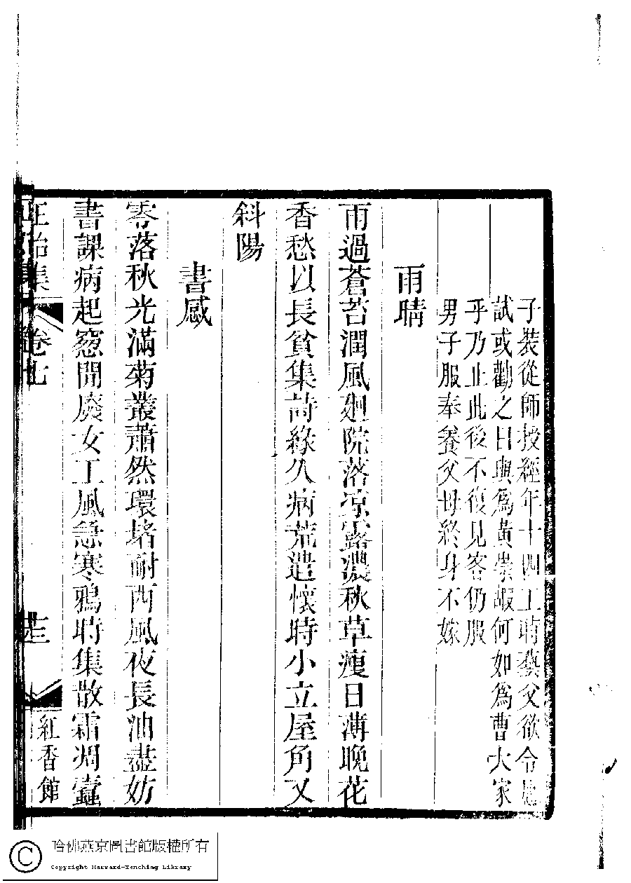 | (PRINT FRIENDLY VERSION) 國朝閨秀正始集﹕二十卷﹐附錄﹕一卷﹐補遺﹕一卷﹐又附題詞﹕一卷(清惲珠輯)。清道光十一年(1831)紅香館刻本。 ![]() Page : 7.13a | click for larger image | 國朝閨秀正始集﹕二十卷﹐附錄﹕一卷﹐補遺﹕一卷﹐又附題詞﹕一卷(清惲珠輯)。清道光十一年(1831)紅香館刻本。![]() Page : 7.12b | click for larger image | Back |