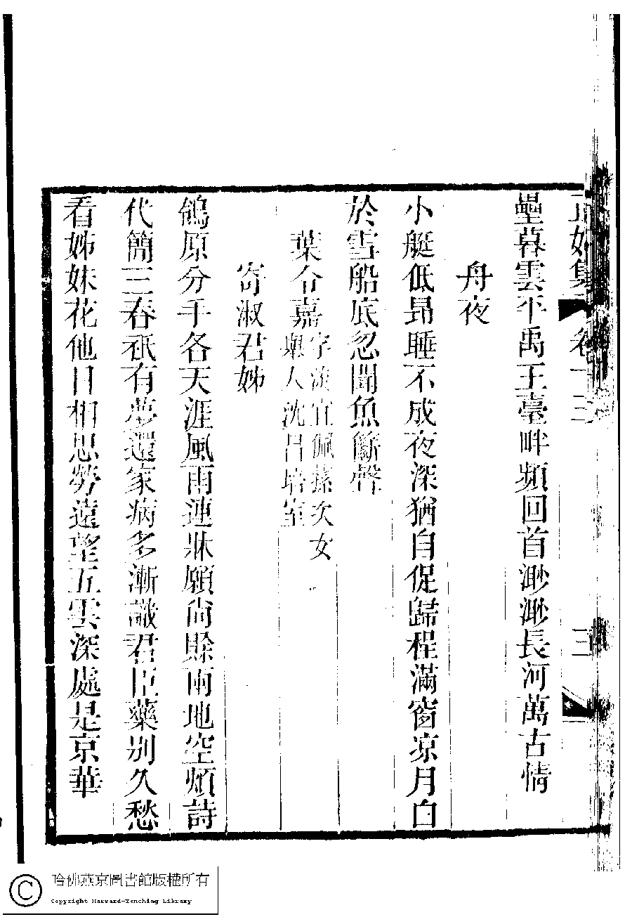 | (PRINT FRIENDLY VERSION) 國朝閨秀正始集﹕二十卷﹐附錄﹕一卷﹐補遺﹕一卷﹐又附題詞﹕一卷(清惲珠輯)。清道光十一年(1831)紅香館刻本。 ![]() Page : 13.3b | click for larger image | Back |