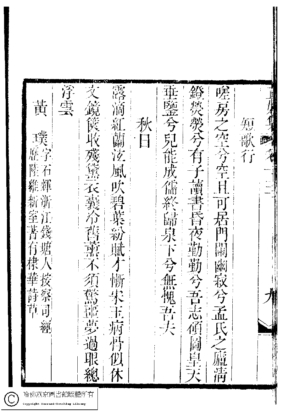 | (PRINT FRIENDLY VERSION) 國朝閨秀正始集﹕二十卷﹐附錄﹕一卷﹐補遺﹕一卷﹐又附題詞﹕一卷(清惲珠輯)。清道光十一年(1831)紅香館刻本。 ![]() Page : 13.9b | click for larger image | Back |