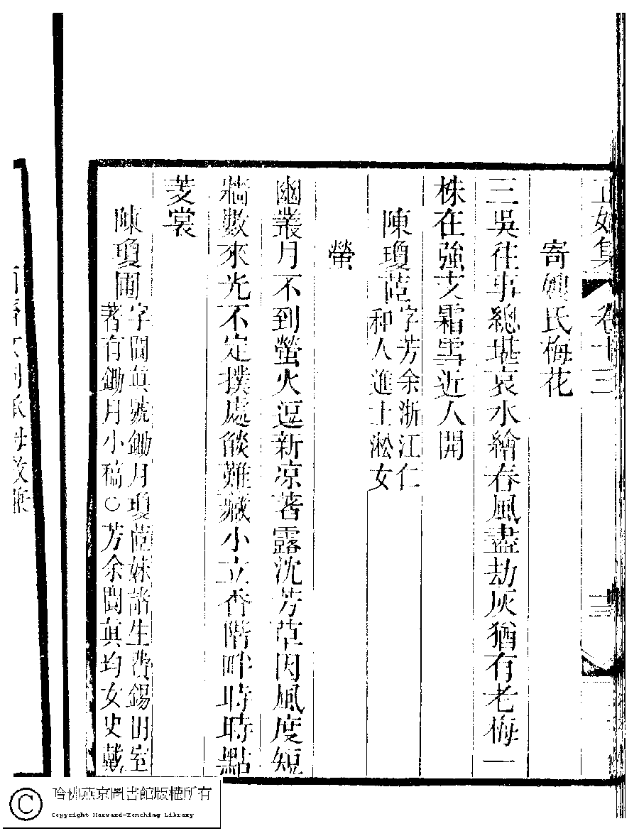 | (PRINT FRIENDLY VERSION) 國朝閨秀正始集﹕二十卷﹐附錄﹕一卷﹐補遺﹕一卷﹐又附題詞﹕一卷(清惲珠輯)。清道光十一年(1831)紅香館刻本。 ![]() Page : 13.13b | click for larger image | Back |
