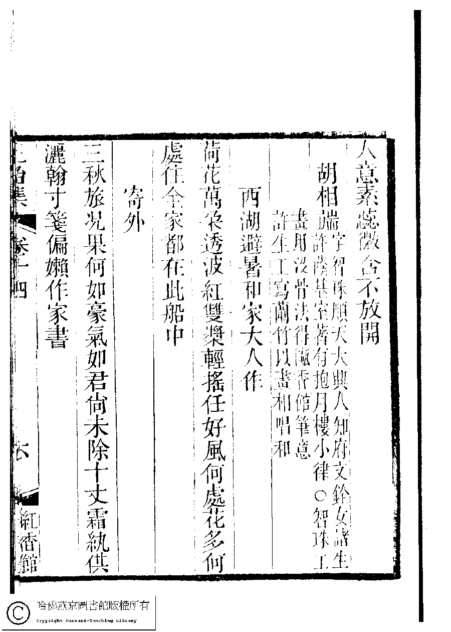 | (PRINT FRIENDLY VERSION) 國朝閨秀正始集﹕二十卷﹐附錄﹕一卷﹐補遺﹕一卷﹐又附題詞﹕一卷(清惲珠輯)。清道光十一年(1831)紅香館刻本。 ![]() Page : 14.6a | click for larger image | Back |
