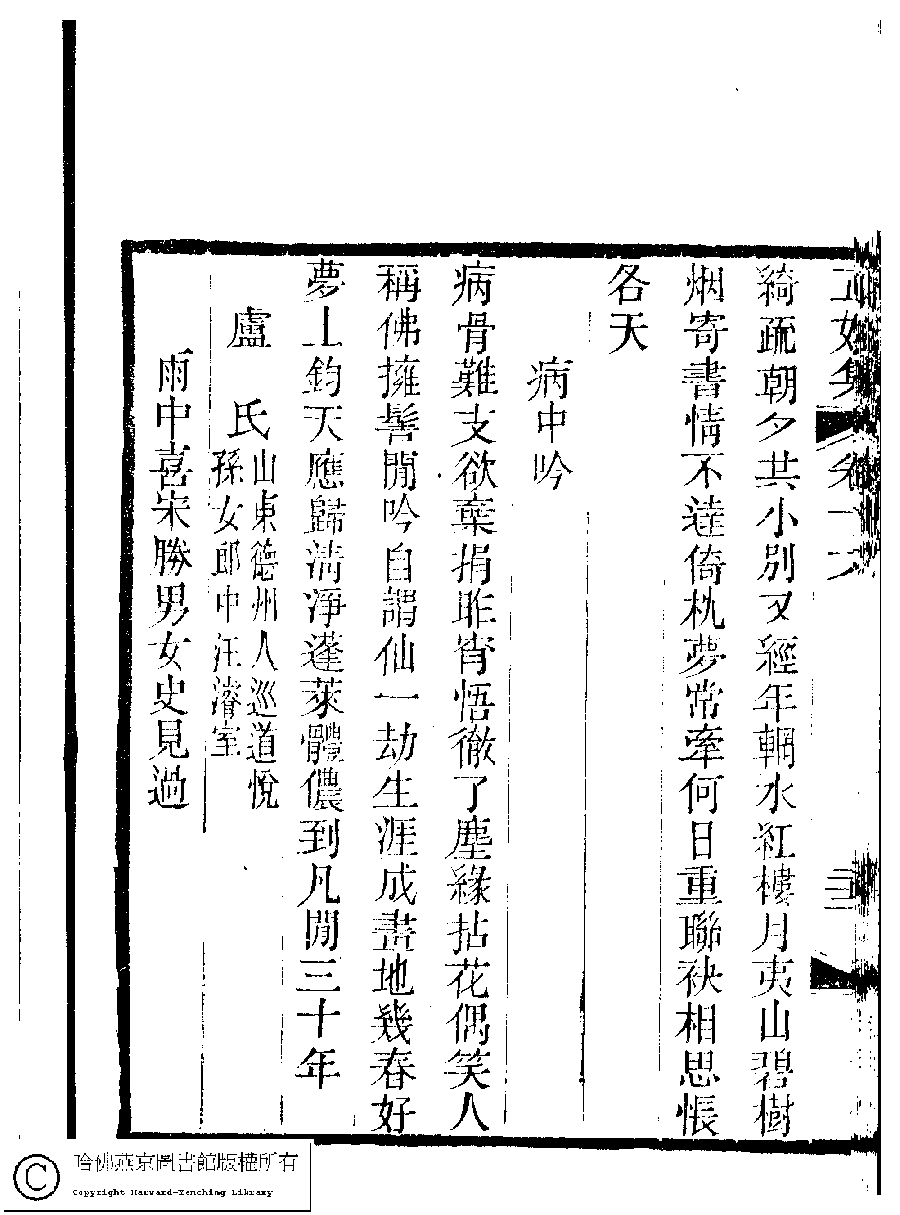 | (PRINT FRIENDLY VERSION) 國朝閨秀正始集﹕二十卷﹐附錄﹕一卷﹐補遺﹕一卷﹐又附題詞﹕一卷(清惲珠輯)。清道光十一年(1831)紅香館刻本。 ![]() Page : 16.22b | click for larger image | Back |