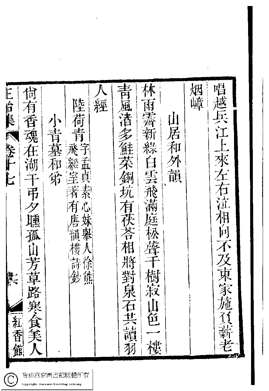 | (PRINT FRIENDLY VERSION) 國朝閨秀正始集﹕二十卷﹐附錄﹕一卷﹐補遺﹕一卷﹐又附題詞﹕一卷(清惲珠輯)。清道光十一年(1831)紅香館刻本。 ![]() Page : 17.16a | click for larger image | Back |