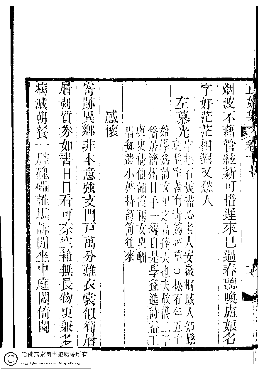 | (PRINT FRIENDLY VERSION) 國朝閨秀正始集﹕二十卷﹐附錄﹕一卷﹐補遺﹕一卷﹐又附題詞﹕一卷(清惲珠輯)。清道光十一年(1831)紅香館刻本。 ![]() Page : 17.18b | click for larger image | Back |