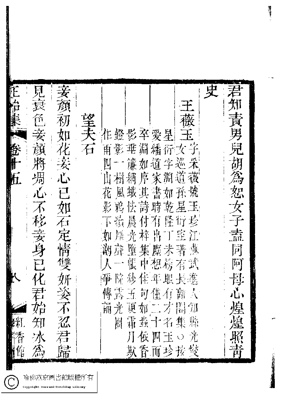 | (PRINT FRIENDLY VERSION) 國朝閨秀正始集﹕二十卷﹐附錄﹕一卷﹐補遺﹕一卷﹐又附題詞﹕一卷(清惲珠輯)。清道光十一年(1831)紅香館刻本。 ![]() Page : 15.8b | click for larger image | 國朝閨秀正始集﹕二十卷﹐附錄﹕一卷﹐補遺﹕一卷﹐又附題詞﹕一卷(清惲珠輯)。清道光十一年(1831)紅香館刻本。![]() Page : 15.8a | click for larger image | Back |