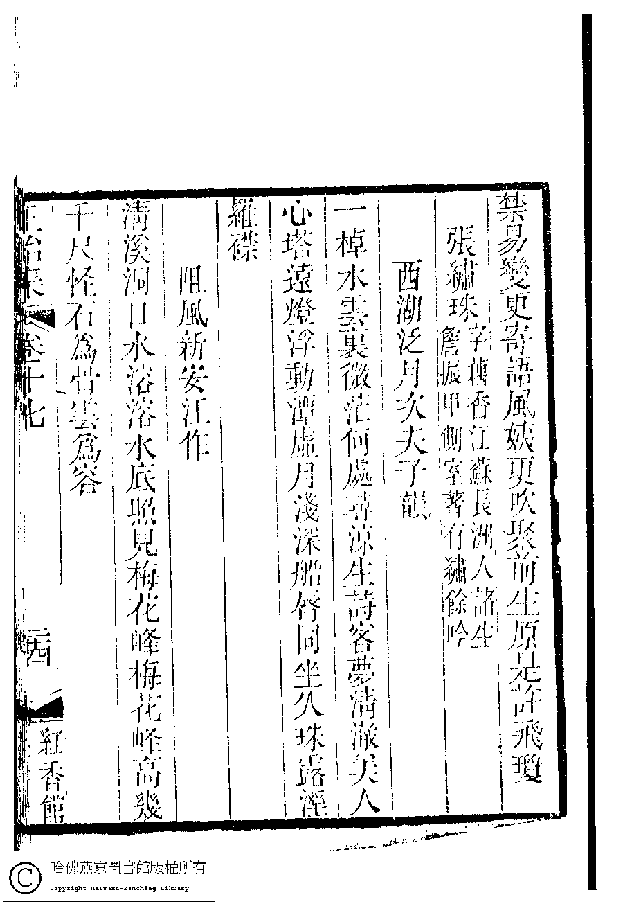| (PRINT FRIENDLY VERSION) 國朝閨秀正始集﹕二十卷﹐附錄﹕一卷﹐補遺﹕一卷﹐又附題詞﹕一卷(清惲珠輯)。清道光十一年(1831)紅香館刻本。 ![]() Page : 17.24a | click for larger image | Back |