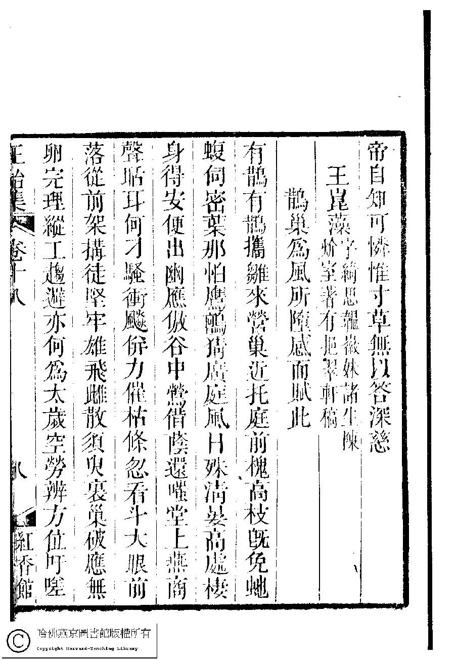 | (PRINT FRIENDLY VERSION) 國朝閨秀正始集﹕二十卷﹐附錄﹕一卷﹐補遺﹕一卷﹐又附題詞﹕一卷(清惲珠輯)。清道光十一年(1831)紅香館刻本。 ![]() Page : 18.8a | click for larger image | Back |