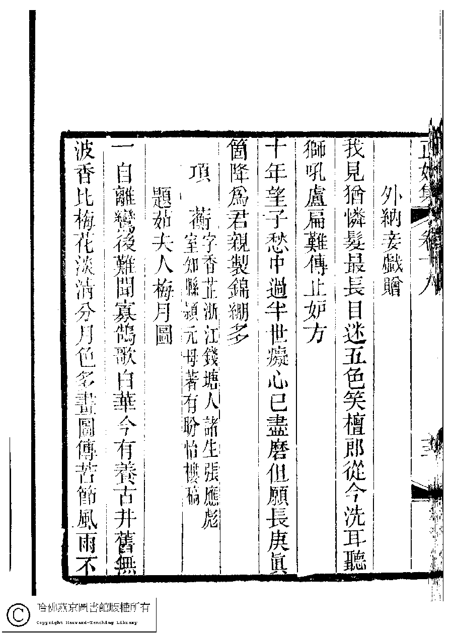 | (PRINT FRIENDLY VERSION) 國朝閨秀正始集﹕二十卷﹐附錄﹕一卷﹐補遺﹕一卷﹐又附題詞﹕一卷(清惲珠輯)。清道光十一年(1831)紅香館刻本。 ![]() Page : 18.13b | click for larger image | Back |