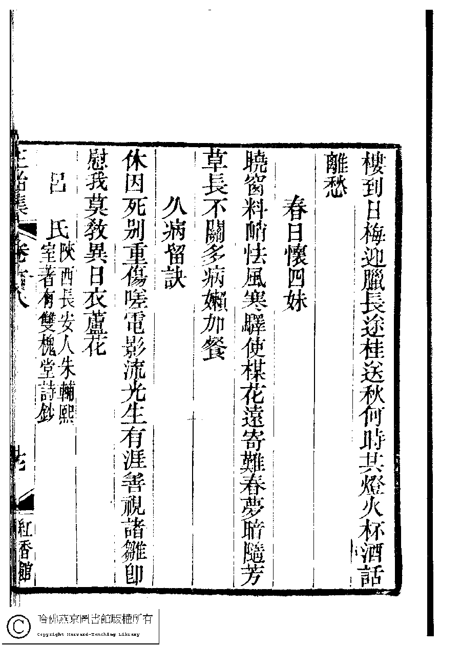 | (PRINT FRIENDLY VERSION) 國朝閨秀正始集﹕二十卷﹐附錄﹕一卷﹐補遺﹕一卷﹐又附題詞﹕一卷(清惲珠輯)。清道光十一年(1831)紅香館刻本。 ![]() Page : 18.17a | click for larger image | Back |