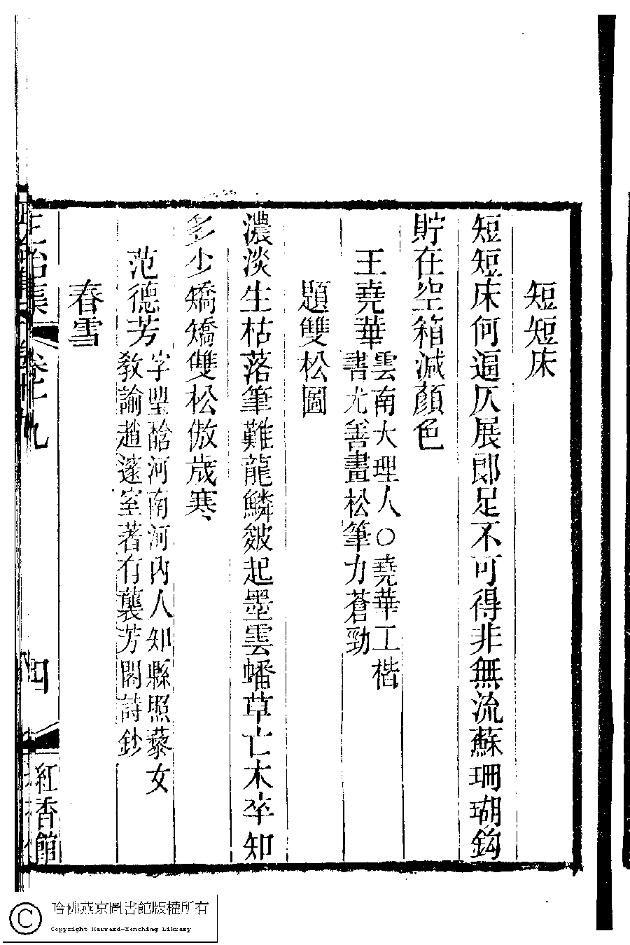 | (PRINT FRIENDLY VERSION) 國朝閨秀正始集﹕二十卷﹐附錄﹕一卷﹐補遺﹕一卷﹐又附題詞﹕一卷(清惲珠輯)。清道光十一年(1831)紅香館刻本。 ![]() Page : 19.4a | click for larger image | Back |