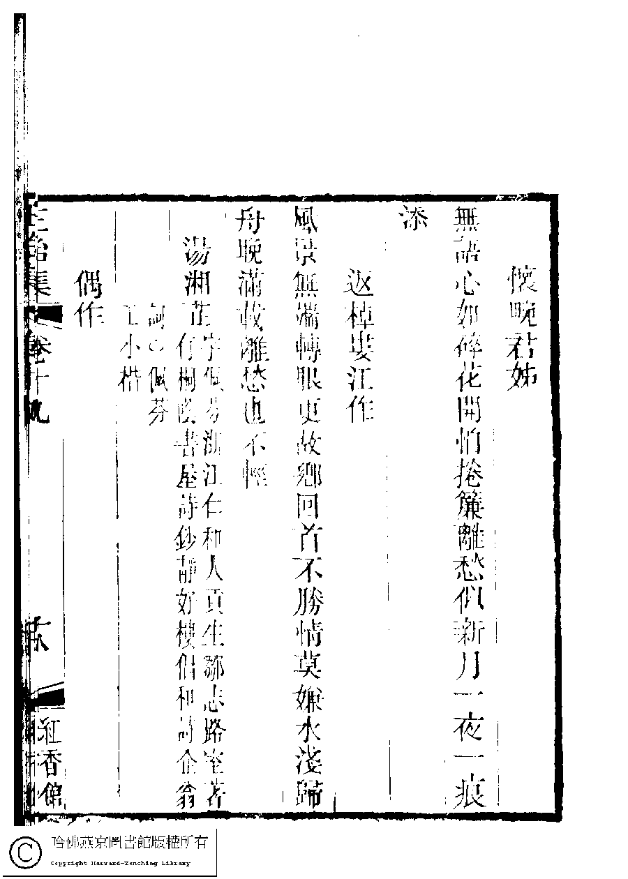 | (PRINT FRIENDLY VERSION) 國朝閨秀正始集﹕二十卷﹐附錄﹕一卷﹐補遺﹕一卷﹐又附題詞﹕一卷(清惲珠輯)。清道光十一年(1831)紅香館刻本。 ![]() Page : 19.18a | click for larger image | Back |