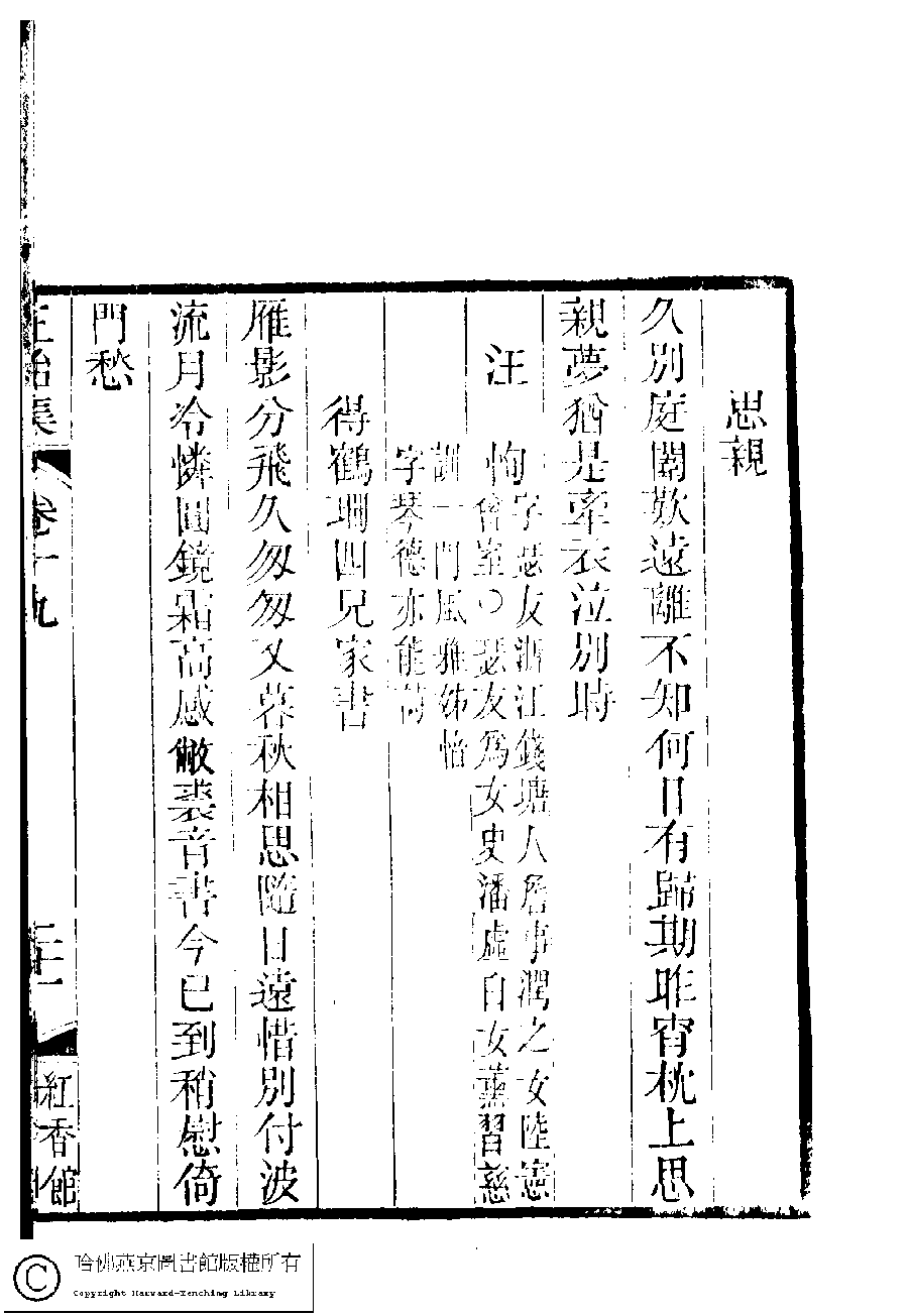 | (PRINT FRIENDLY VERSION) 國朝閨秀正始集﹕二十卷﹐附錄﹕一卷﹐補遺﹕一卷﹐又附題詞﹕一卷(清惲珠輯)。清道光十一年(1831)紅香館刻本。 ![]() Page : 19.21a | click for larger image | Back |