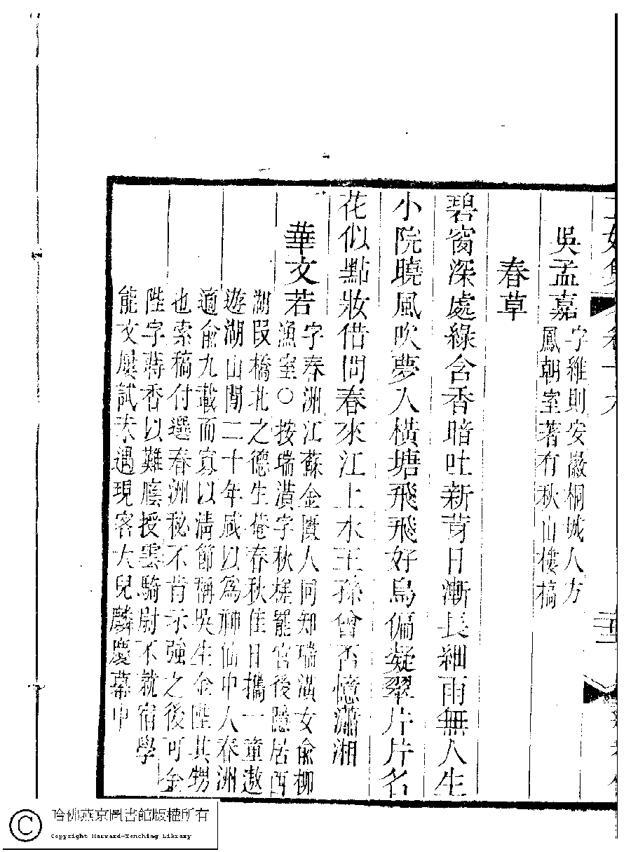 | (PRINT FRIENDLY VERSION) 國朝閨秀正始集﹕二十卷﹐附錄﹕一卷﹐補遺﹕一卷﹐又附題詞﹕一卷(清惲珠輯)。清道光十一年(1831)紅香館刻本。 ![]() Page : 19.22b | click for larger image | Back |