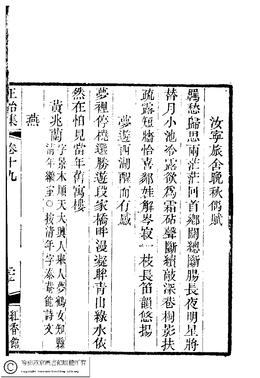 | (PRINT FRIENDLY VERSION) 國朝閨秀正始集﹕二十卷﹐附錄﹕一卷﹐補遺﹕一卷﹐又附題詞﹕一卷(清惲珠輯)。清道光十一年(1831)紅香館刻本。 ![]() Page : 19.23a | click for larger image | Back |